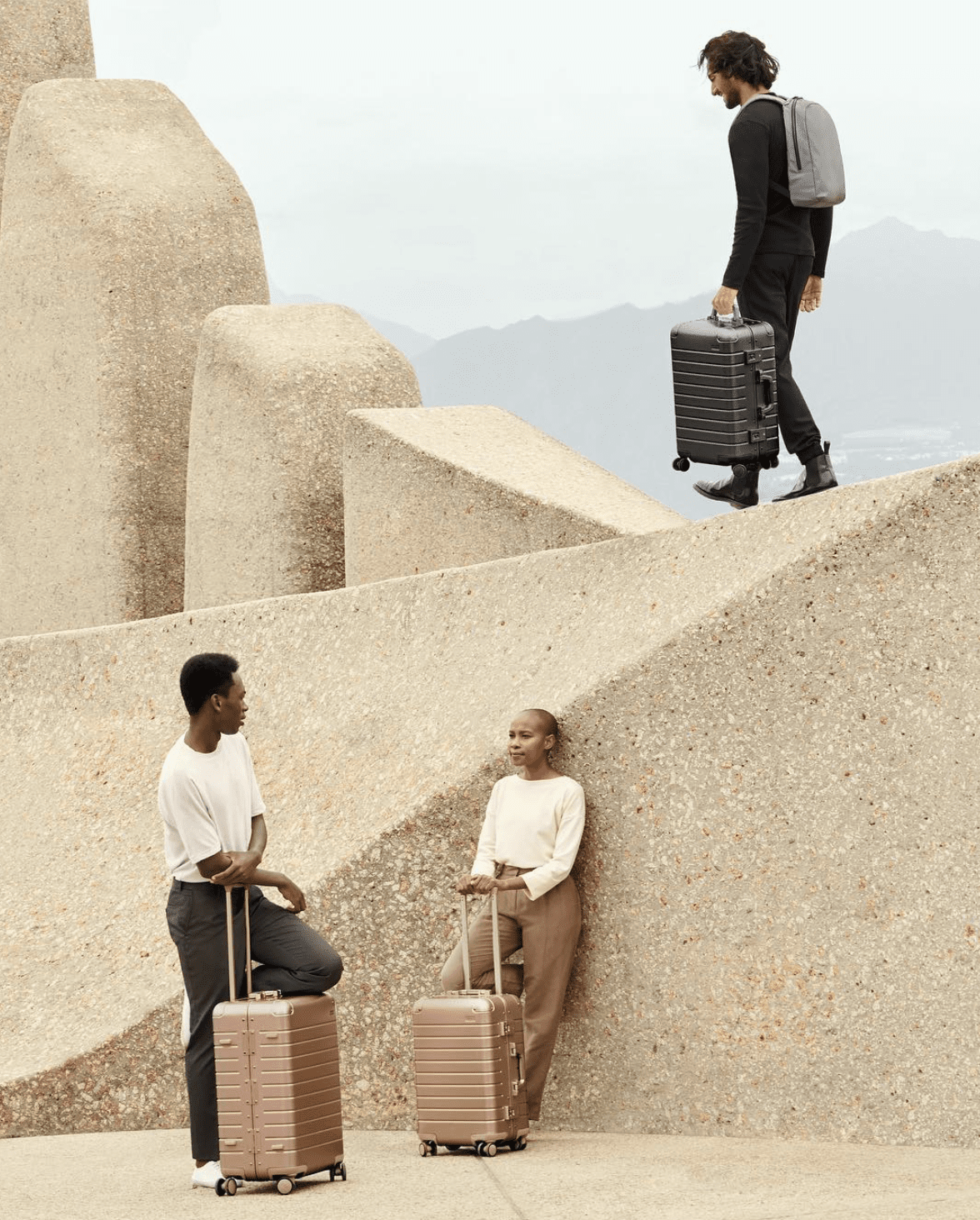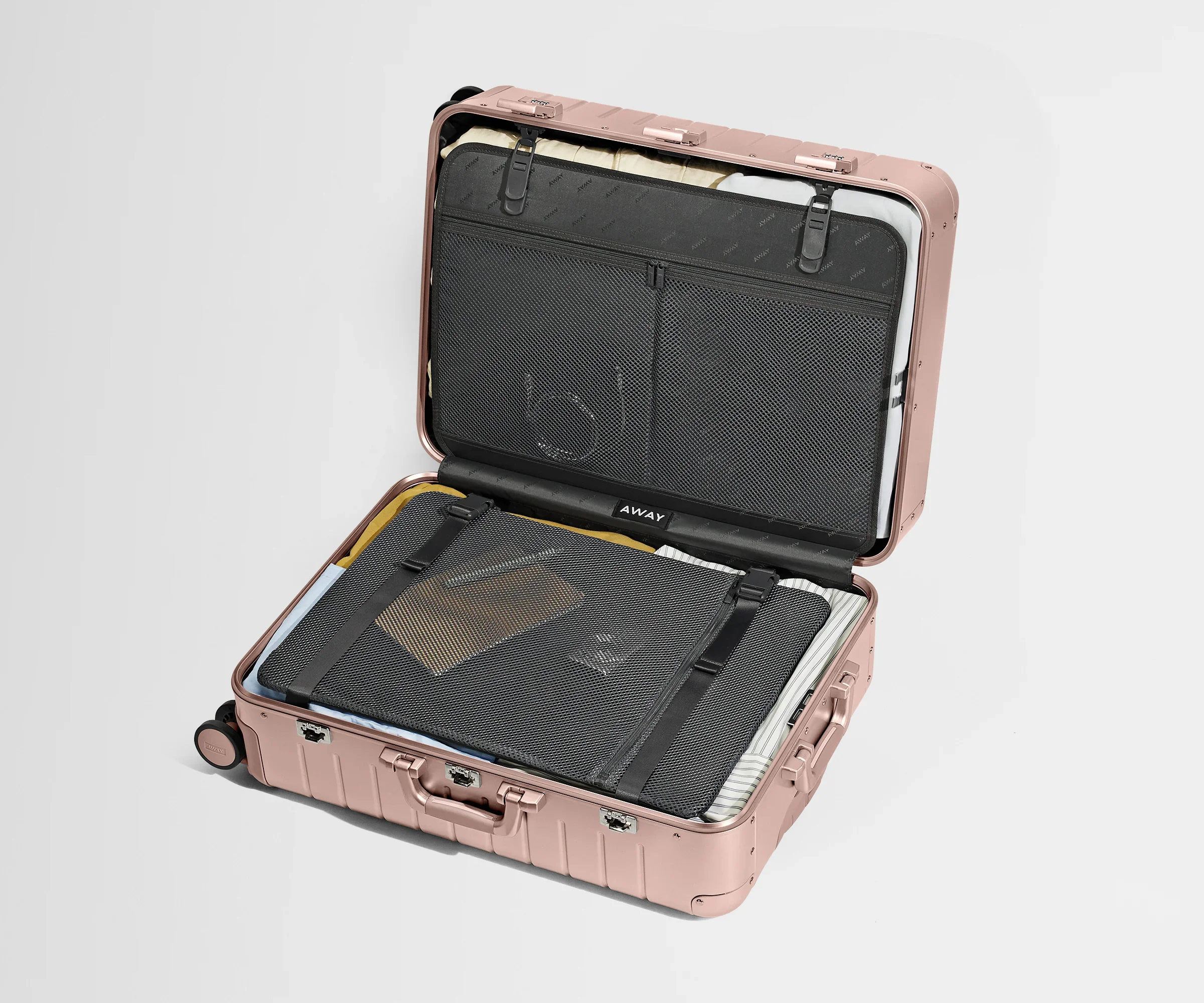 A range of travel pieces designed at Away Travel, reflecting the evolution of the brand’s travel system across luggage and soft goods. At the center is the original Everywhere Bag - the first soft bag introduced to the brand. Created in collaboration with Away’s founders, Jessica led the design while Rina guided product development to bring it to life. Following its launch, Jessica continued to shape the design and growth of the full assortment, overseeing luggage and bags including polycarbonate and softside luggage, aluminum, and daily travel pieces.